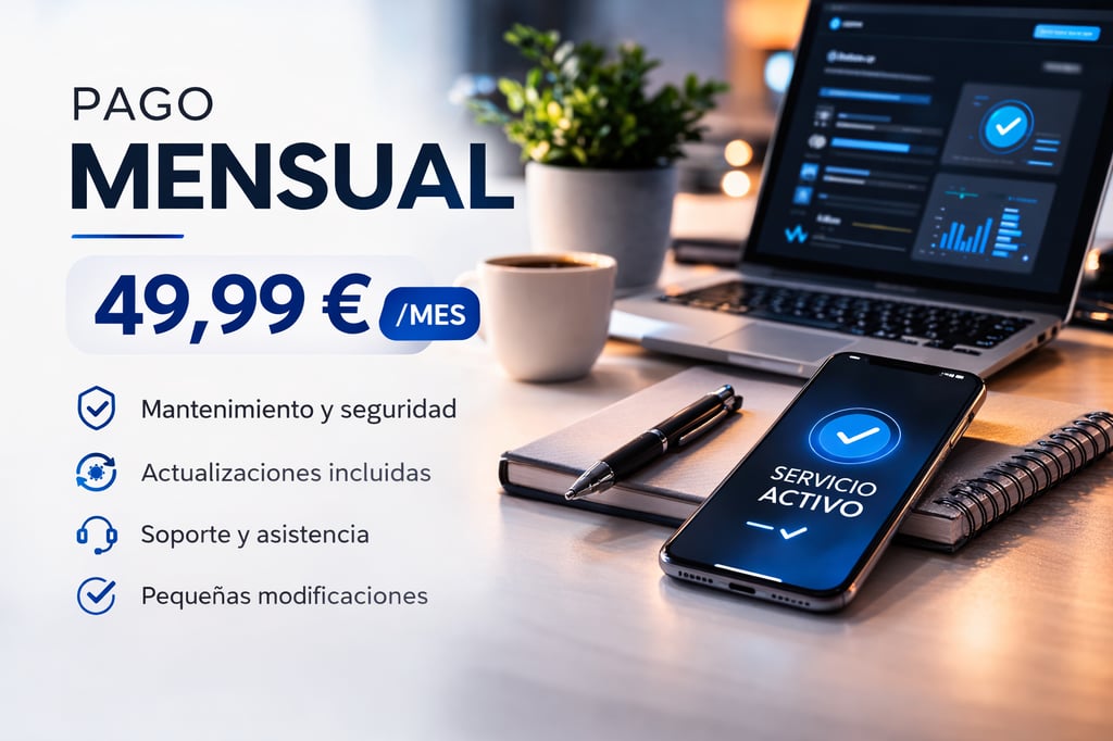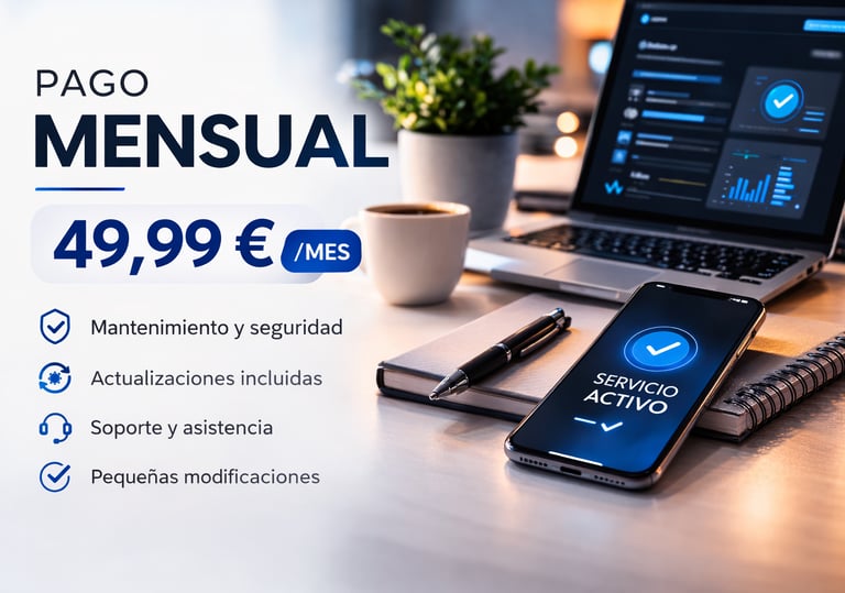 Servicio mensual para mantener tu web actualizada, segura y funcionando correctamente, con soporte básico y pequeñas modificaciones.